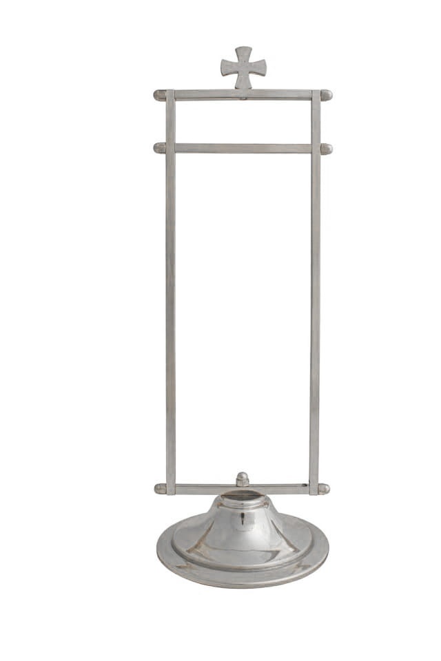 Wieszaczek na ręczniczek. Wykonany z elementów mosiężnych, niklowany.