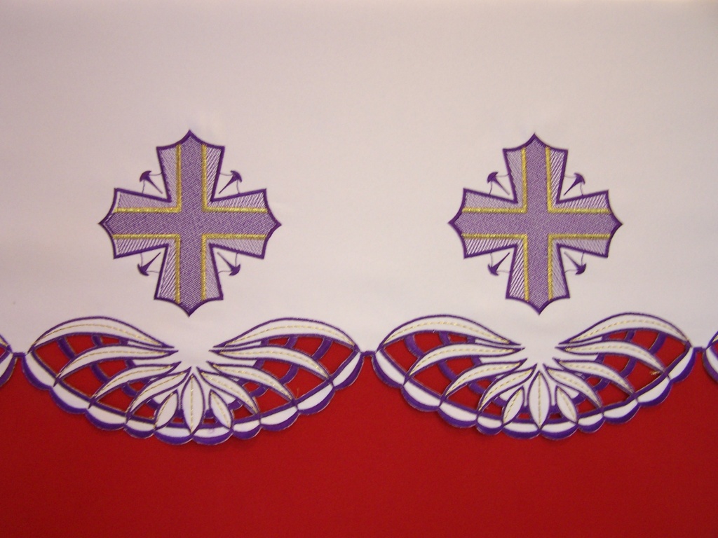 Wysokoś wzoru 22 cm. Możliwe długości co 20 cm. Haft bezpośrednio na obrusie tylko z przodu. Haft z boku