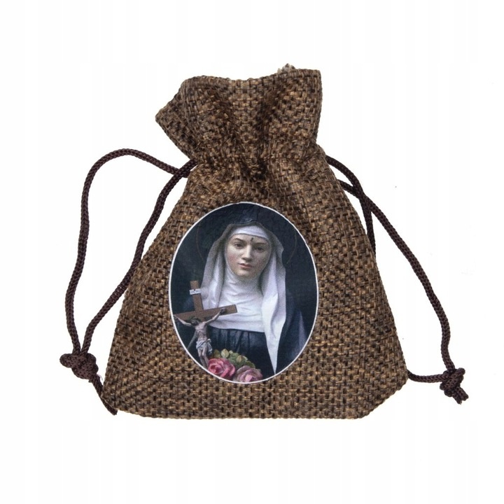 Różaniec z relikwiami Świętej Rity w łączniku.