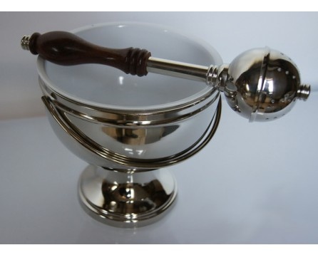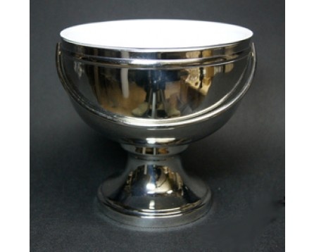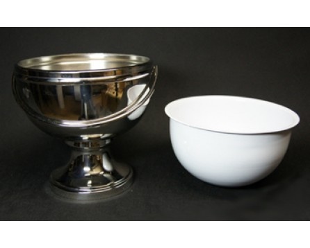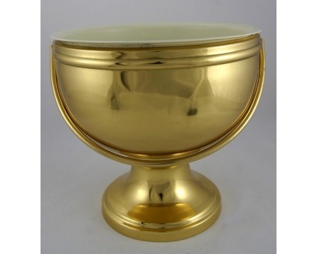 wys. 19, średnica 18 cm, oksydowany z wkładem emaliowanym. Kolor złoty lub srebrny.