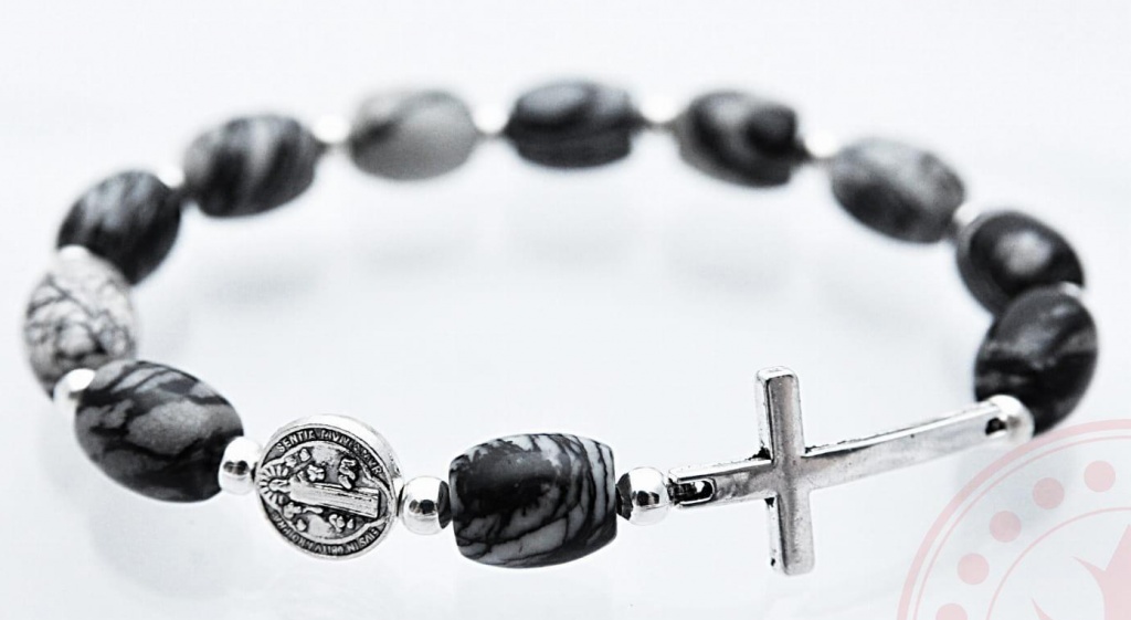 • Przekładka ze św. Benedyktem, na podwójnej gumce jubilerskiej która umożliwia dopasowanie bransoletki do (+/-0,5mm)