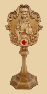 Relkiwiarz drewniany, wykonany z lekkiego drewna liściastego.