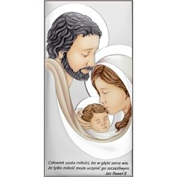 Obraz wykonany z blachy srebrzonej kolorowanejc z grawerowanym tekstem JPII.