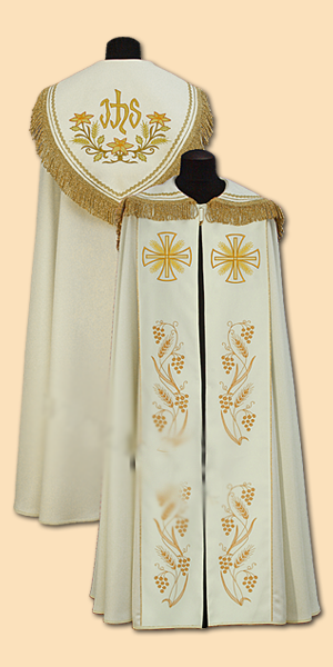 Kapa wykonana tkaninie złotej i złotej ornamentowej