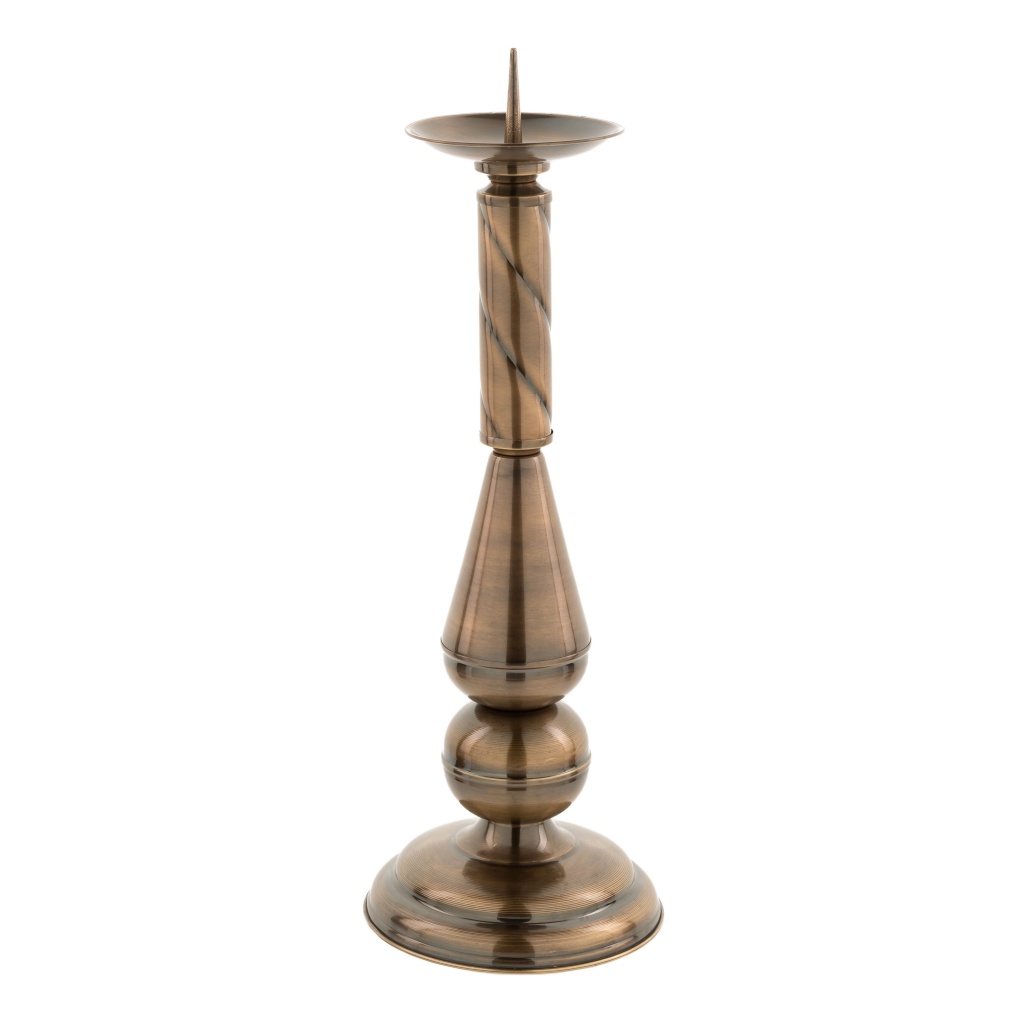 Lichtarz wykonany z patynowanej blachy mosiężnej.