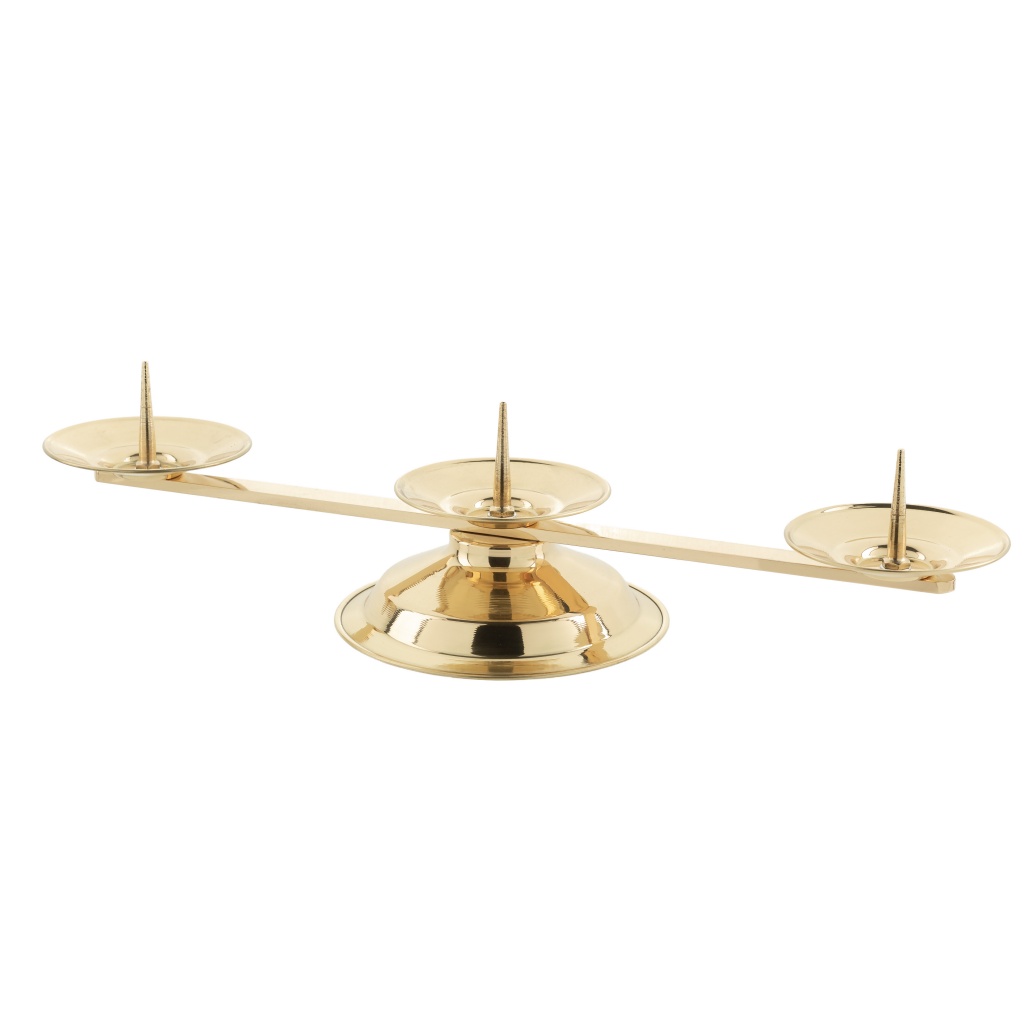 Lichtarz potrójny wykonany z blachy mosiężnej zabezpieczonej specjalnym lakierem.