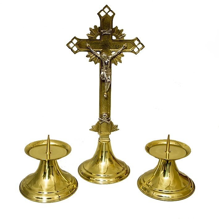Krzyż na ołtarz, wykonany z mosiądzu.