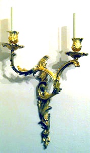 Odlewany kinkiet mosiężny patynowany (postarzany) lub polerowany. Na fotografii wersja na prąd.